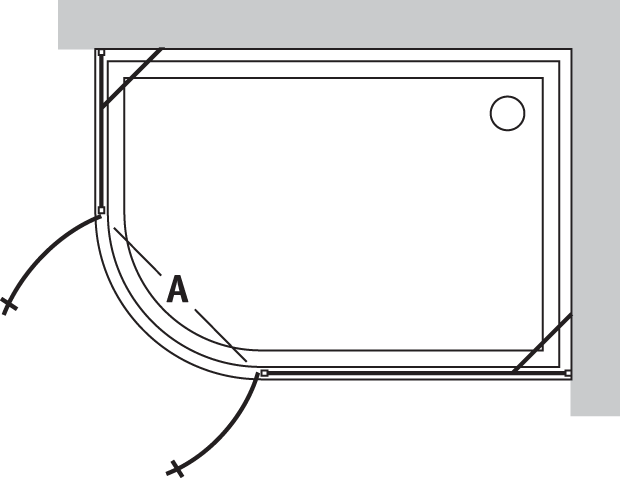 Ограждение правое или левое угловое полукруглое асимметричное с распашными дверями