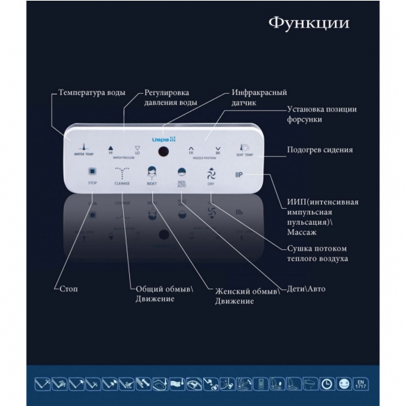 Наличие отдельной форсунки для функции "Обмыв" и женской форсунки для функции "Биде" позволяет сделать процедуру ещё более гигиеничной.