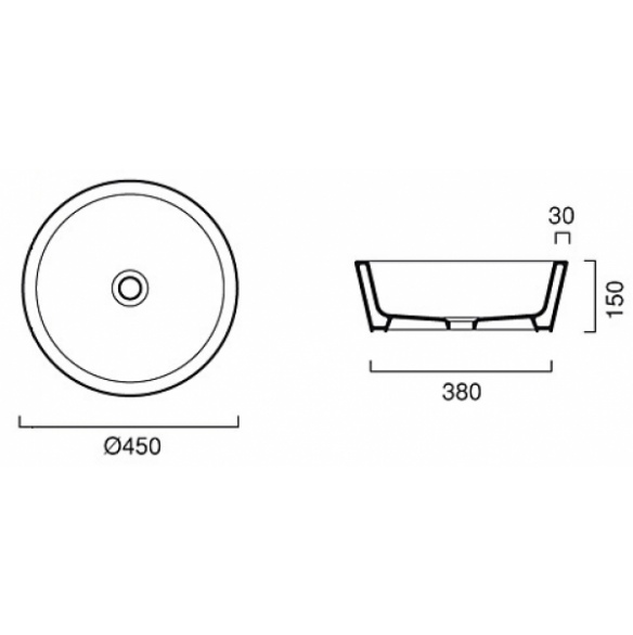 Настольная раковина без слива-перелива, для настенных или настольных кранов.